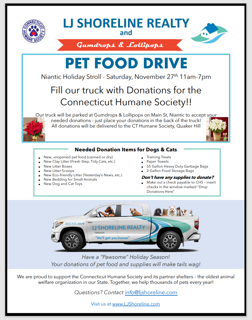 Stop by and donate pet food or supplies by stuffing our Tundra parked in the parking lot of Gumdrops and Lollipops in Niantic CT